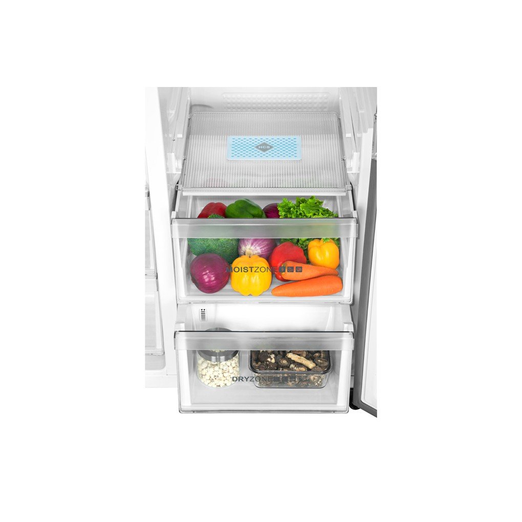 ***Công nghệ bảo quản thực phẩm: Ngăn chứa thực phẩm khô và ẩm riêng biệtNgăn rau củ giữ ẩm Moist Zone có màng lọc HSC