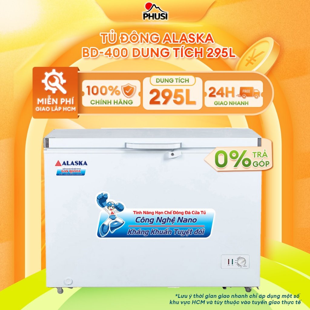 Tủ đông Alaska BD-400 có công suất 400 lít, thích hợp dùng cho các siêu thị mini, nhà hàng, tiệm tạp hóa... Tủ dùng để bảo quản kem, thịt cá... trong thời gian dài mà không lo bị ảnh hưởng tới chất lượng của thực phẩm.