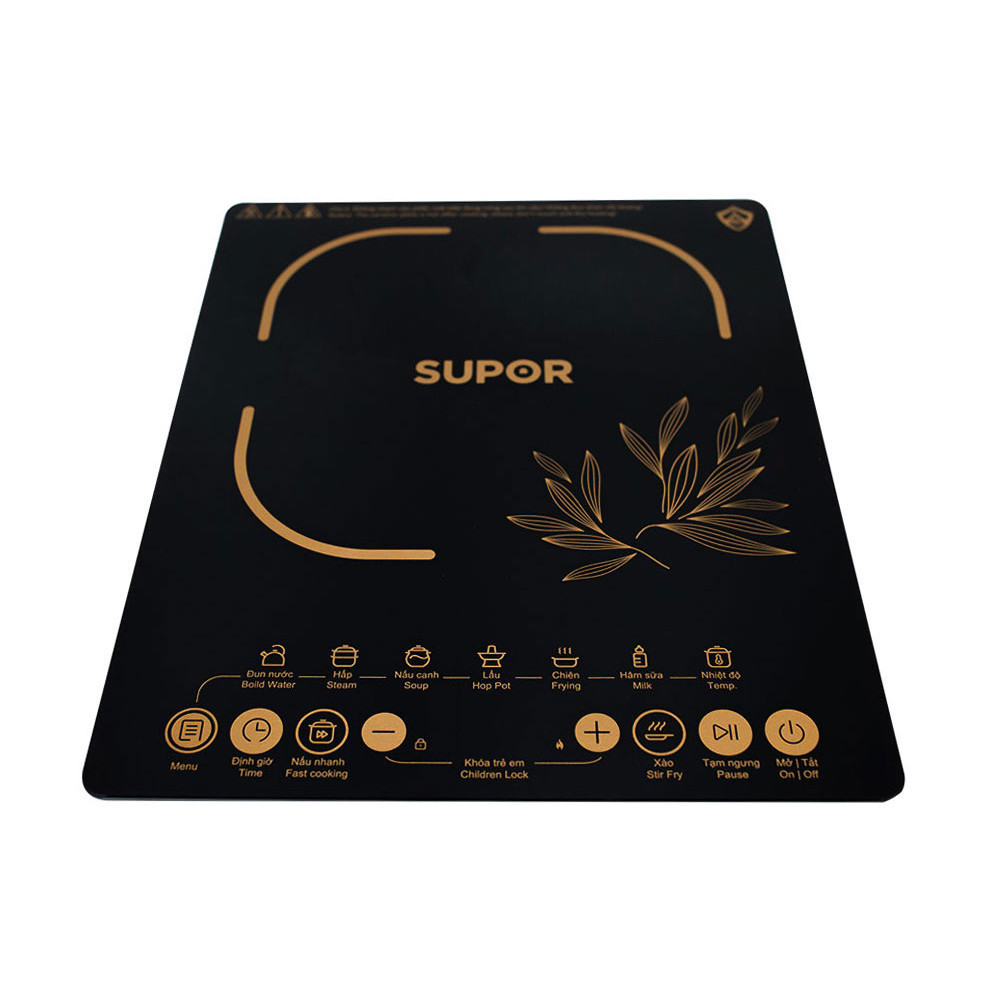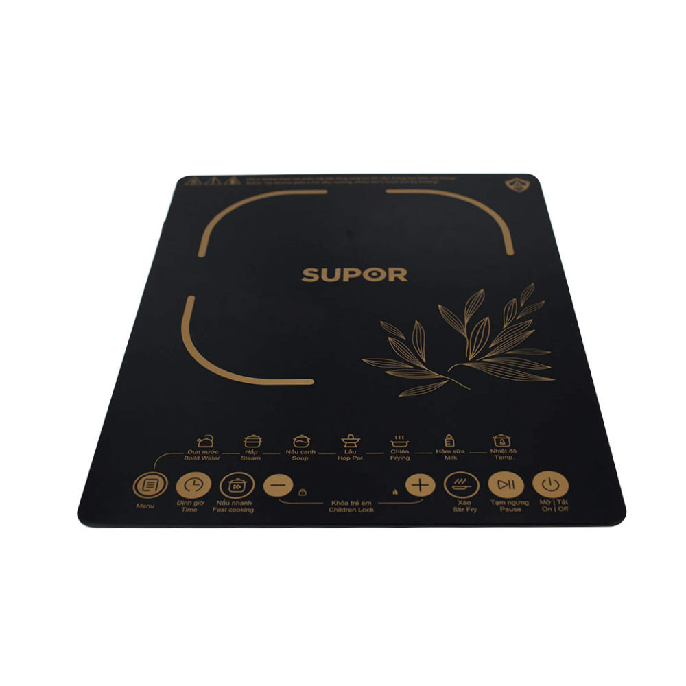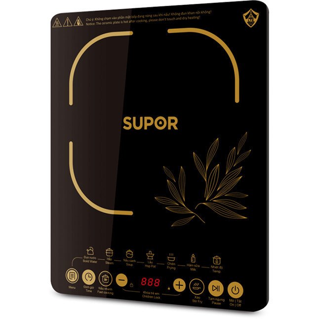 Hãy cùng chúng tôi tìm hiểu kĩ hơn về dòng sản phẩm này nhé! Bếp điện từ đơn Supor SDHCB11TVN-YL-210 được thiết kế nhỏ gọn, đơn giản nhưng lại rất tinh tế với gam màu đen và họa tiết vàng và xanh nổi bật, có tính thẩm mỹ cao, giúp cho căn bếp nhà bạn thêm phần sang trọng hơn, mặt bếp làm bằng kính pha lê cao cấp chịu nhiệt cao cấp, sáng loáng, chịu được trọng lượng lớn, nhiệt độ cao, không bị rạn nứt khi vô tình đánh rơi và dễ dàng vệ sinh sau khi sử dụng, với khả năng chịu nhiệt tới hơn 1000 độ C và khả năng chịu sốc nhiệt lên đến hơn 800 độ C, mặt kính của bếp có khả năng truyền nhiệt định hướng giúp lượng nhiệt truyền trực tiếp lên đáy nồi đảm bảo khả năng nấu nướng nhanh giúp tiết kiệm điện hiệu quả, khung bếp bằng nhựa cách nhiệt, cách điện, an toàn và tạo độ bền cao cho bếp.