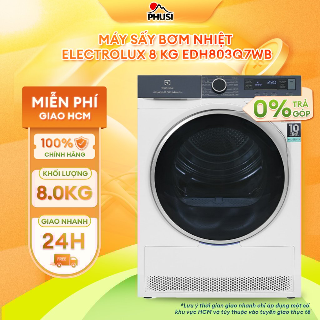 Máy sấy bơm nhiệt Electrolux Inverter 8 kg EDH803Q7WB là sự lựa chọn lý tưởng cho các gia đình muốn tiết kiệm thời gian phơi đồ và giữ cho quần áo luôn sạch sẽ, thơm tho.