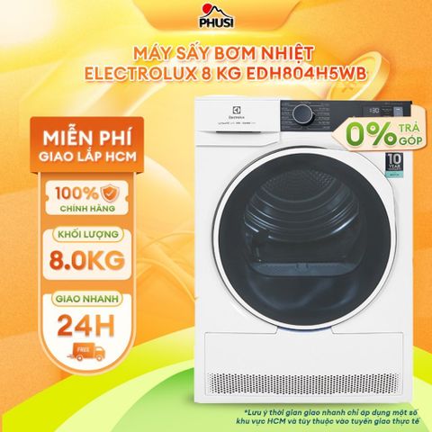 Máy sấy quần áo Electrolux EDH804H5WB trang bị công nghệ sấy bơm nhiệt Heat Pump, giúp làm khô quần áo nhanh vượt trội để bạn nhanh chóng có quần áo khô sử dụng.