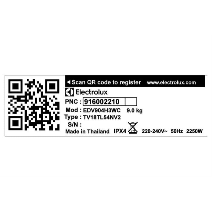 Thông số kỹ thuật Máy sấy thông hơi Electrolux UltimateCare 9 kg EDV904H3WC