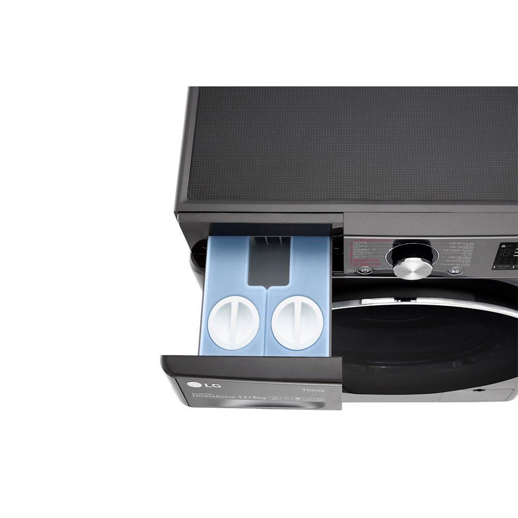 Máy giặt LG này được tích hợp chức năng sấy quần áo đi kèm, với khối lượng giặt tối đa là 13 kg và sấy 8 kg, máy giặt phù hợp với nhu cầu giặt giũ cho các gia đình có đông thành viên (trên 7 người), không có nhiều thời gian phơi khô quần áo.