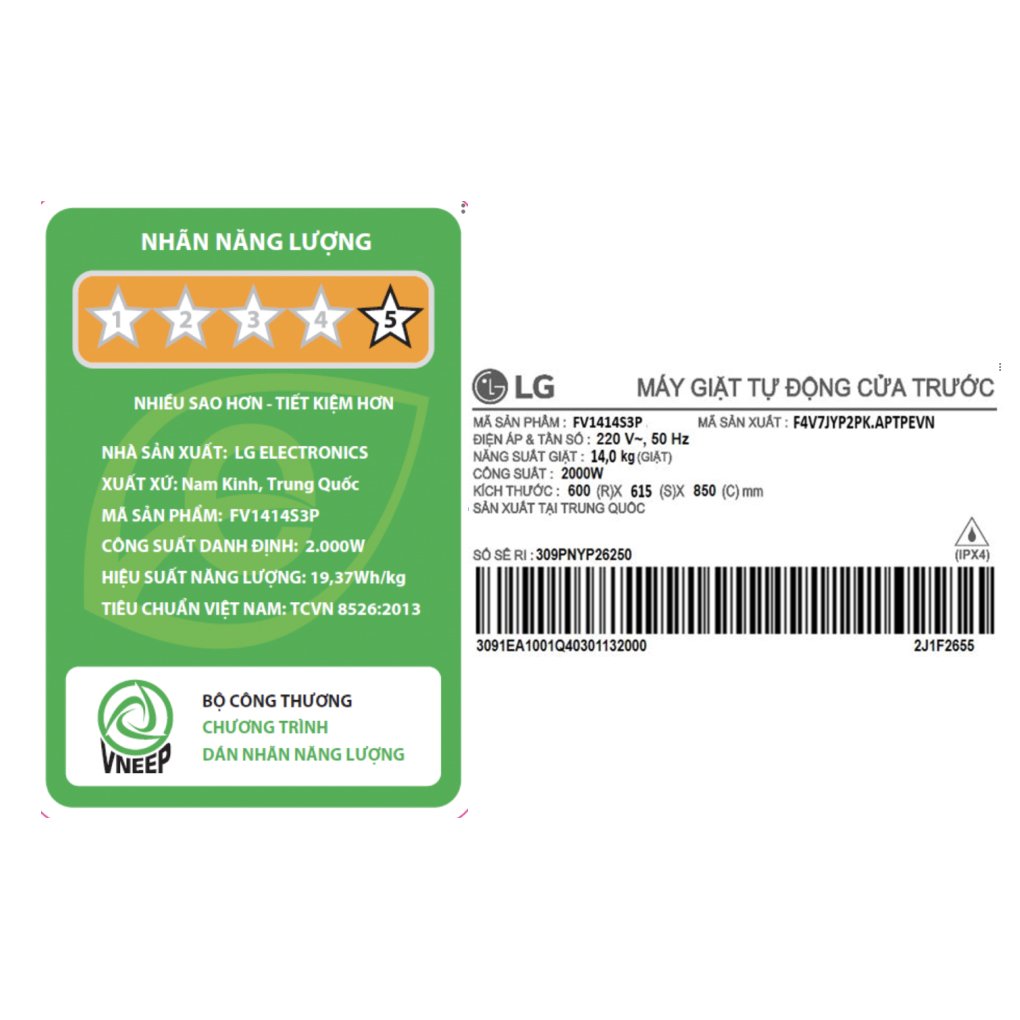 Khối lượng giặt: 14 Kg