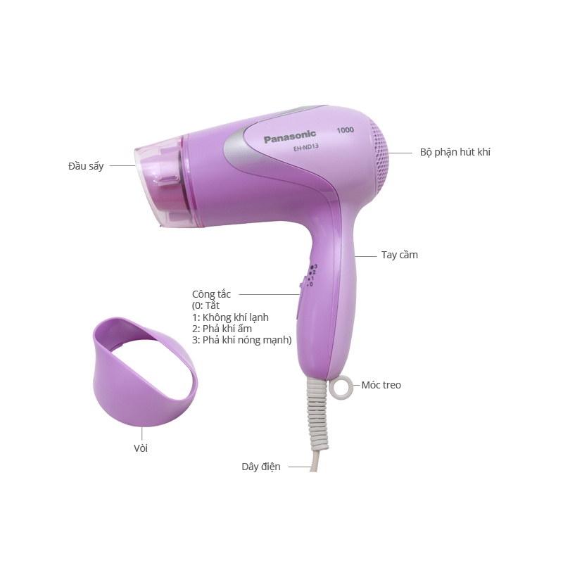 Thông số kỹ thuật chi tiết Máy sấy tóc 1100W Panasonic EH-ND13-V645 - Hàng Chính Hãng