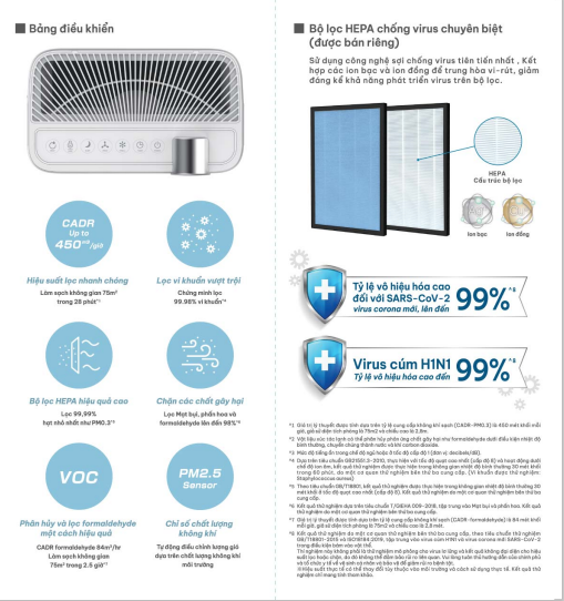 Bộ lọc: Bộ lọc HEPA (H13), lọc xúc tác lạnh và than hoạt tính, bộ tiền lọc
