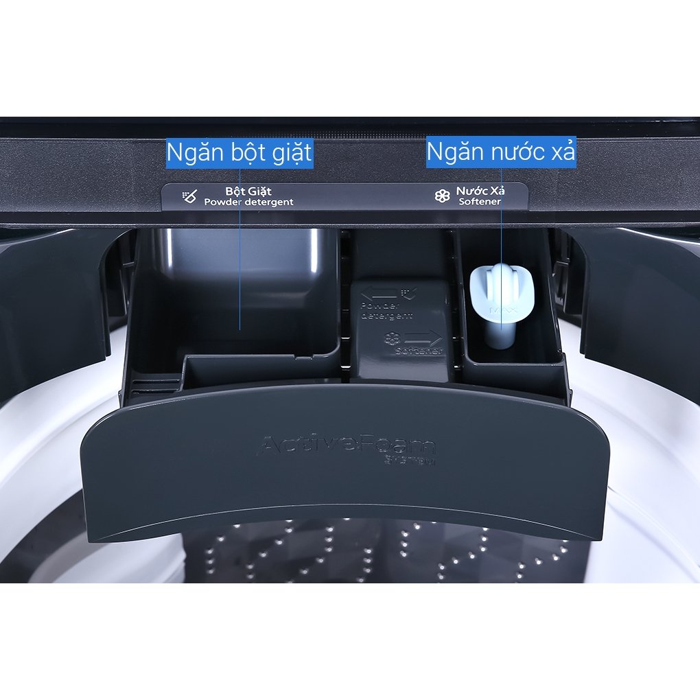 Hệ thống ActiveFoam tạo bọt siêu mịn, đậm đặc len lỏi sâu vào từng sợi vải để đánh bay các vết bẩn cứng đầu và giúp quần áo trắng tinh như mới