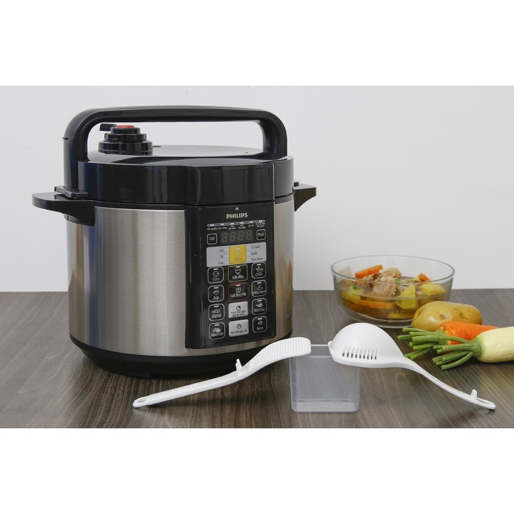 Nồi áp suất Philips HD2136 còn trang bị van xả áp tự động nếu áp suất vượt mức quy định, giúp giảm áp an toàn. Bên cạnh đó, nồi còn có van khóa an toàn chịu được áp lực cao, đảm bảo không bị bung nắp và không thể mở nắp khi chưa xả áp. Cùng với tính năng tự động điều chỉnh nhiệt độ đảm bảo nồi chuyển sang nấu ở nhiệt độ thấp hơn khi nhiệt tăng cao quá mức, giúp các món có nước như súp, cháo không tràn lên trên và làm tắc hệ thống van xả, giúp an toàn khi nấu nướng và tăng tuổi thọ cho sản phẩm.