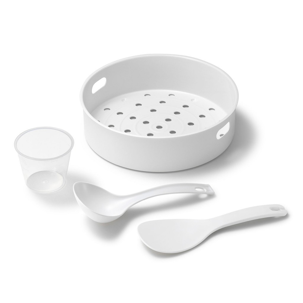 Phụ kiện: Giá hấp, muỗng xới cơm, muỗng múc canh, cốc đong, giá giữ muôi