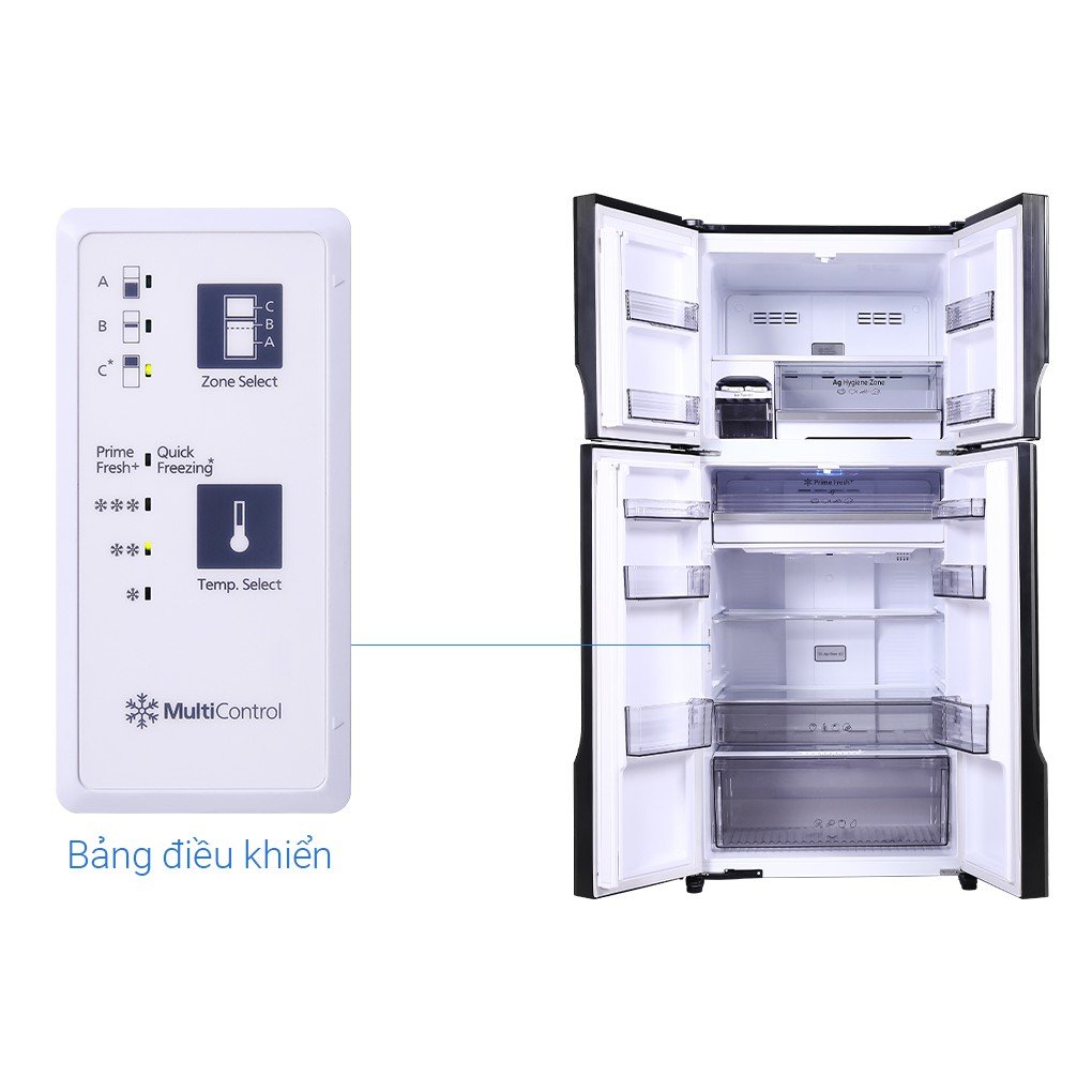 Công nghệ bảo quản thực phẩm:Ngăn rau củ kép Fresh Safe, Ngăn trữ đông thịt tinh thể bạc Ag, Ngăn đông mềm diệt khuẩn Prime Fresh+ & Blue Ag+