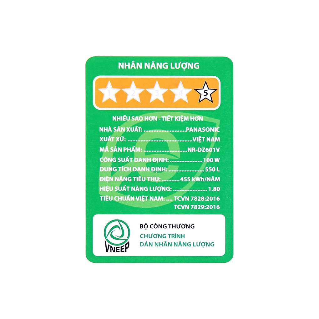 Công suất tiêu thụ công bố theo TCVN:~ 1.25 kW/ngày