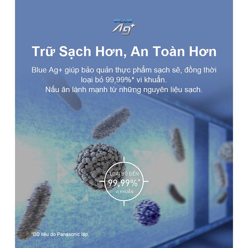 - Công nghệ kháng khuẩn Blue Ag loại bỏ hiệu quả 99,99% vi khuẩn