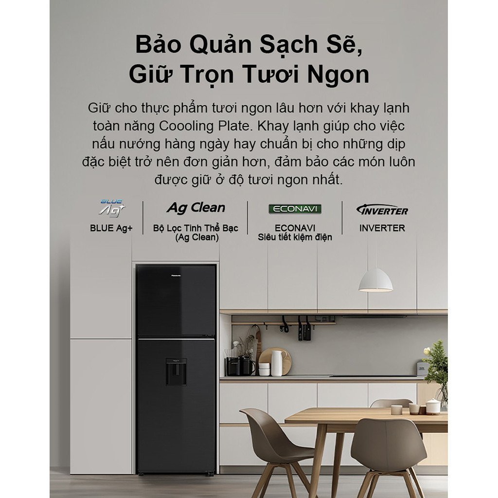 Tủ lạnh Panasonic Diệt Khuẩn 366L NR-TL381GVKV là sự kết hợp giữa tay nghề tinh tế và thiết kế chau truốt cùng các công nghệ giúp nâng cao sức khỏe mỗi ngày. Tủ lạnh còn được trang bị công nghệ diệt khuẩn Blue Ag+ tiên tiến, giúp loại bỏ tới 99,99% vi khuẩn, đảm bảo an toàn vệ sinh thực phẩm cho gia đình bạn. Giữ cho thực phẩm tươi ngon lâu hơn với khay lạnh toàn năng Coooling Plate. Khay lạnh giúp cho việc nấu nướng hàng ngày hay chuẩn bị cho những dịp đặc biệt trở nên đơn giản hơn, đảm bảo các món luôn được giữ ở độ tươi ngon nhất.