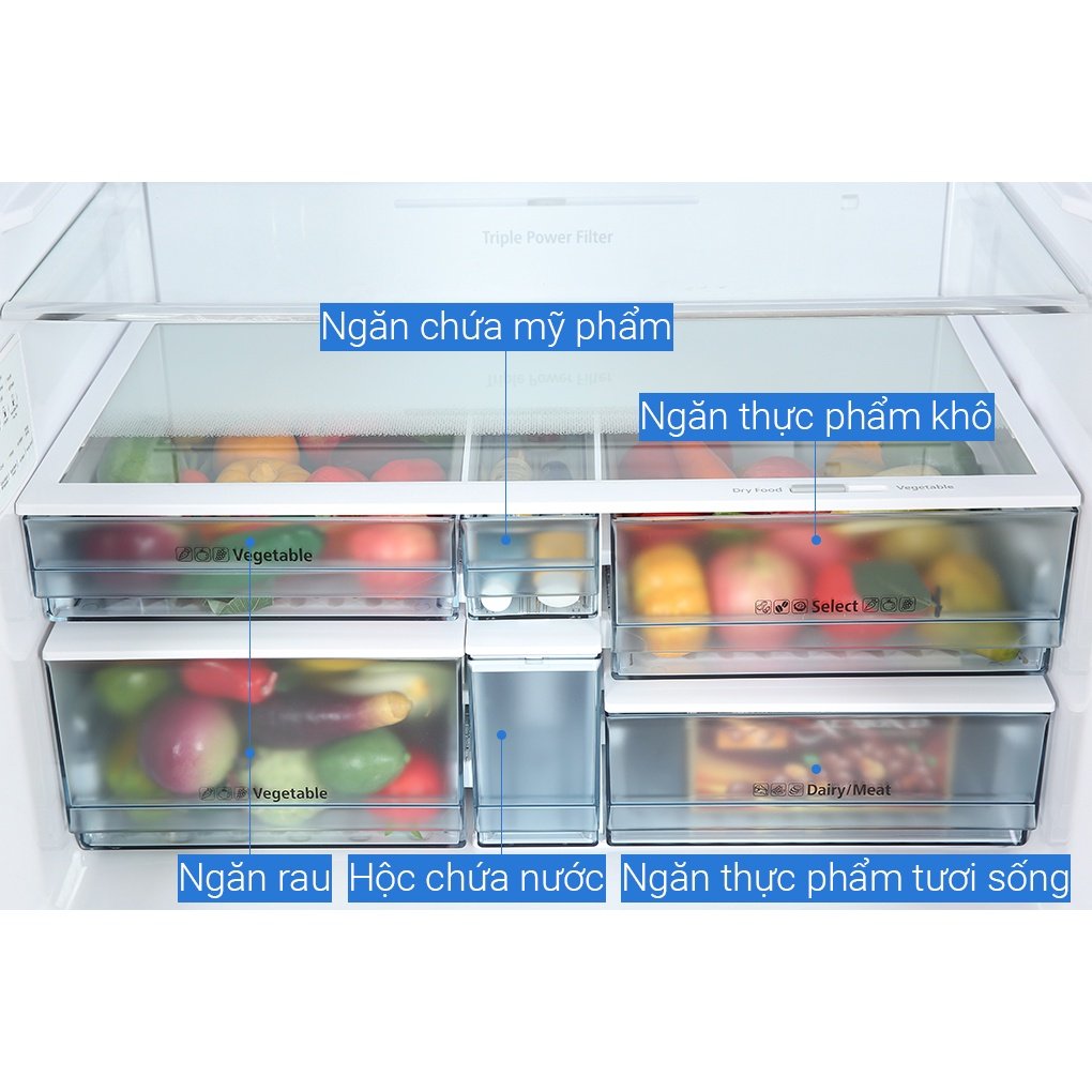 Công nghệ bảo quản thực phẩm: Ngăn chuyển đổi đa năng Selectable Zone (có Đông mềm -3°C), Ngăn rau quả giữ rau củ quả tươi ngon với độ ẩm và nhiệt độ tối ưu