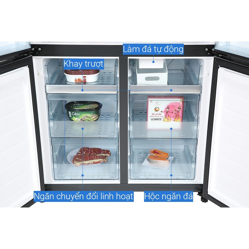 Tiện ích: Bình chứa nước với bộ lọc, Bảng điều khiển màn hình LED, Chuông báo khi quên đóng cửa, Chế độ cấp đông nhanh, Làm đá tự động, Đệm cửa chống mốc