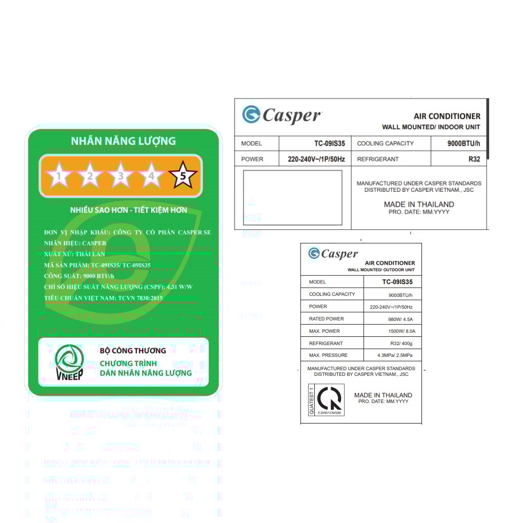 Nhãn năng lượng: 5 sao (Hiệu suất năng lượng 4.31)