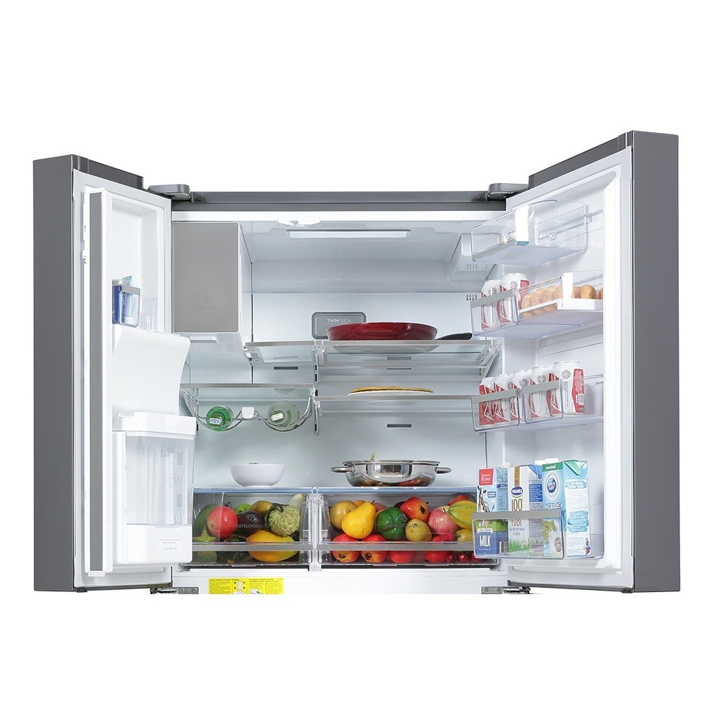 - Lối thiết kế độc đáo Multi Door - 4 cánh hiện đại, cùng dung tích lớn 609 lít đa dạng các kích thước ngăn, hộc chứa giúp việc lưu trữ, sắp xếp thực phẩm thêm phần tiện lợi.